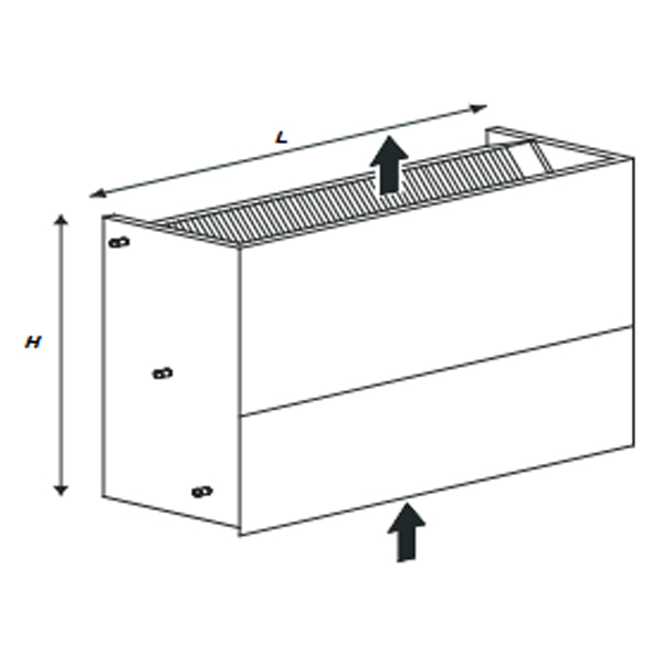 • Cabinet version structure: covering cabinet in pre-painted sheet steel, RAL9003, complete with regenerable filter, ABS polymer grilles and natural condensate drain pan.