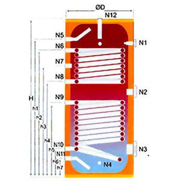 Με τη χρήση ανόδου μαγνησίου, παρέχεται επίσης καθοδική προστασία. Χρησιμοποιείται για τη θέρμανση νερού βρύσης, τόσο με λέβητες όσο και με ηλιακούς συλλέκτες. Η θερμότητα μεταφέρεται στο νερό βρύσης μέσω της κάτω σερπαντίνας. Ανάλογα με το προϊόν και τη ζήτηση, το σύστημα μπορεί να υποστηριχθεί με ηλεκτρικούς θερμαντήρες έως και 30 kW.